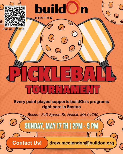 Bosse 310 Speen Street, Natick, MAAllston-Brighton, this one’s for you. Join buildOn Boston for a fun and meaningful Pickleball Tournament on Sunday, May 17th from 2–5 PM at Bosse in Natick. Every point played helps […]