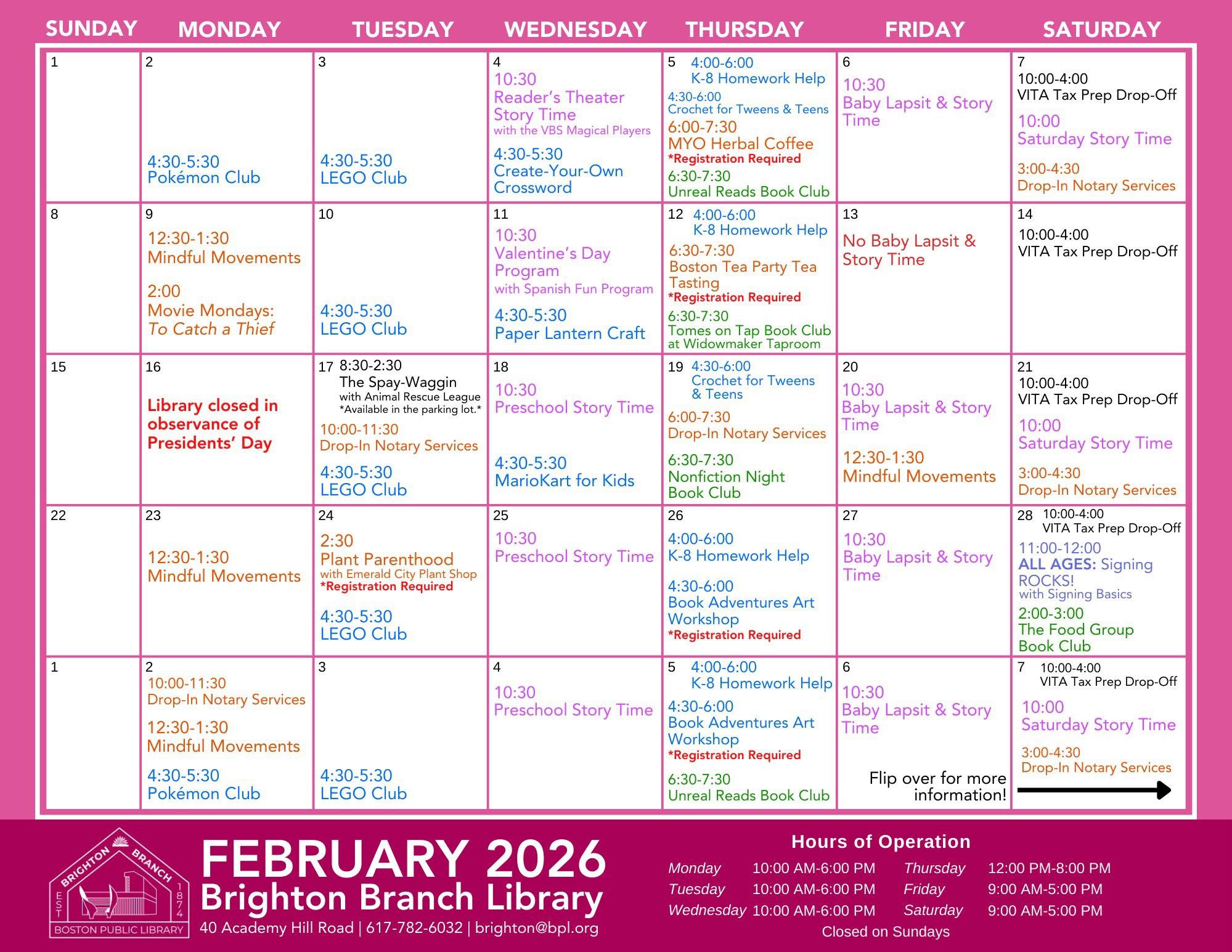 Brighton Branch Library – February Schedule