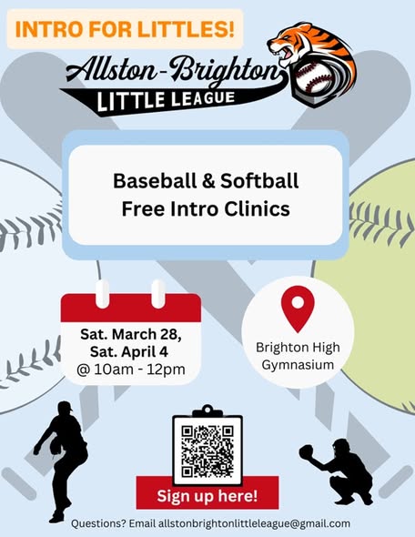 Brighton HS 7878 Brighton Road, Brighton, MA, United StatesAllston-Brighton Little League Let’s get ready for the season. Our Pre-Season Softball and Baseball Clinics are the perfect way to warm up before spring. March 28 and April 4Brighton High […]